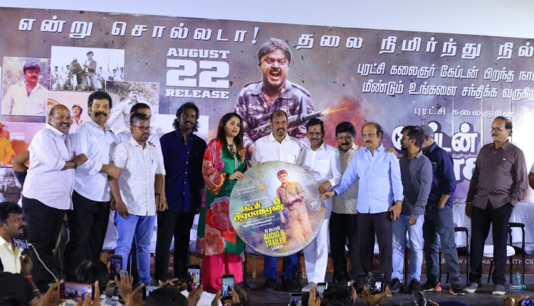 இந்த நிகழ்வில் இயக்குநர் ஆர்.கே.செல்வமணி, வசனகர்த்தா லியாகத் அலிகான்,மன்சூர் அலிகான், நாயகி ரம்யா கிருஷ்ணன் உள்ளிட்ட படக்குழுவினருடன் விஜயகாந்தின் மகன் விஜய பிரபாகர், இயக்குநர்கள் எஸ்.ஏசந்திரசேகர்,ஆர்.வி.உதயகு